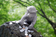 帰りにゆっくりと見ながら歩くと、そこここに雀、猿、蛙、兎等の石像があります。