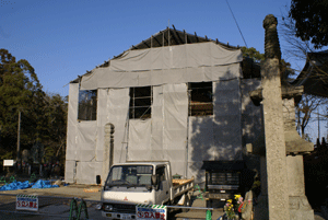 何事だろうなと考えながら境内に入ると、ちょうど建物の改築中です。