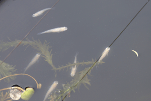 中を覗くとどの鉢にもめだかが泳いでいました。