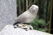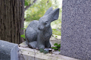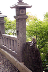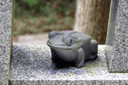 帰りにゆっくりと見ながら歩くと、そこここに雀、猿、蛙、兎等の石像があります。
