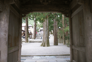 普通、山門の中をのぞくと本堂が見えるのですが、巨大な杉の木に隠れています。