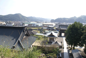 左より 山門から境内を望む 境内(右手が本堂)、本堂よりの景色
