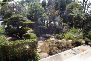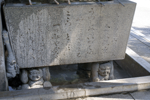 左より ここもお庭が印象的、手水の下には小さな鬼が・・・
