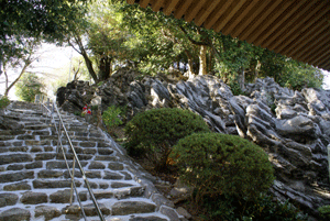 禅師峰寺もご多分に漏れず山の上にそびえるお寺ですが、山門から境内に入ると右手にまるで波の様にうねった奇怪な岩が迎えてくれます。