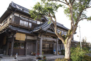 左より 寺務所、巨大な硯