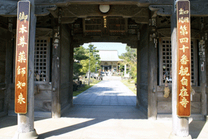 現在の南宇和郡愛南町(旧 御荘町)の街中にあるお寺で、車幅一杯の狭い参道を抜け駐車場に至ります。