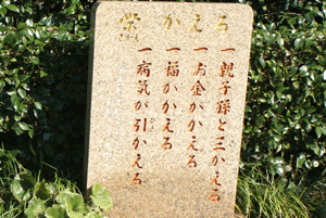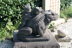 参道には蛙の石像があったのですが、大きな蛙の上に小さな蛙が二匹乗っています。