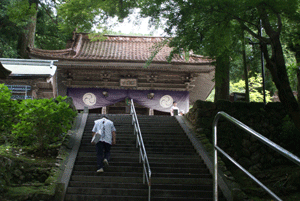 山門をくぐると、すぐに石段があります。