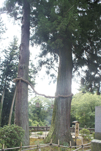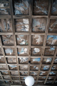 左より 本堂の天井、サルスベリの樹、夫婦杉