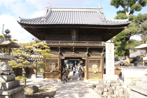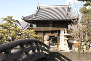 左より 境内南の川岸より山門を望む 山門 鐘楼と本堂(大師堂は現在新築中でした)