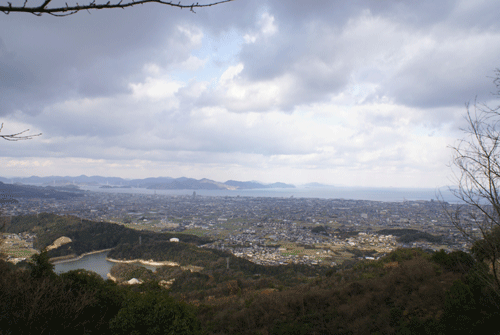 仙遊寺からの景色(今治市遠望、左手前は犬塚池)