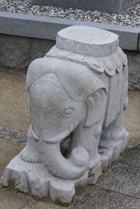 山門の前に、狛犬ならぬ二頭の象が山門をお守りしています。