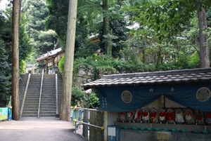 左より 大師堂 大師堂より本堂への参道 山に囲まれた様な本堂