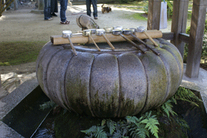 石段を登ると水屋がありますが、菊の形をした珍しいものです。