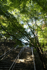 石段を登っている時に言われて見たのですが、下側から見上げるとまるで大きなかぼちゃの様に見えて、「かぼちゃかと思った」と言うと女房に笑われました。