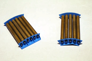 振動クリーナの製作 振動子の切削(別色のレジンを使用) 振動子を真鍮線に串刺しにします