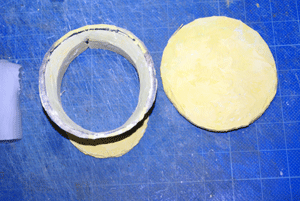 全体の形が整ったら、シール台紙の上にポリパテを盛って、つばの部分を作ります。
